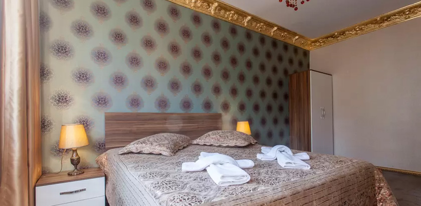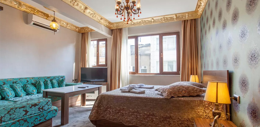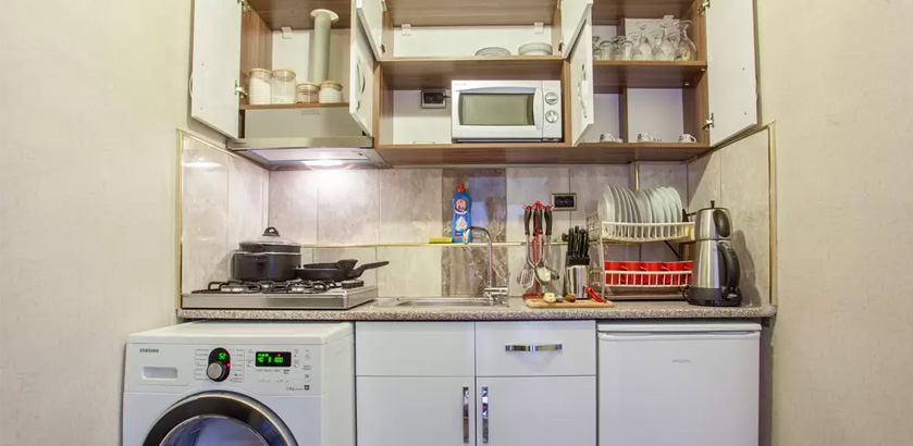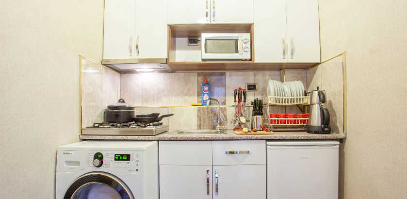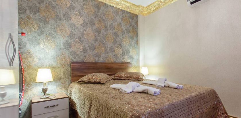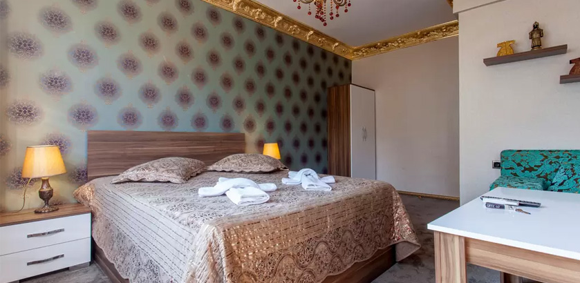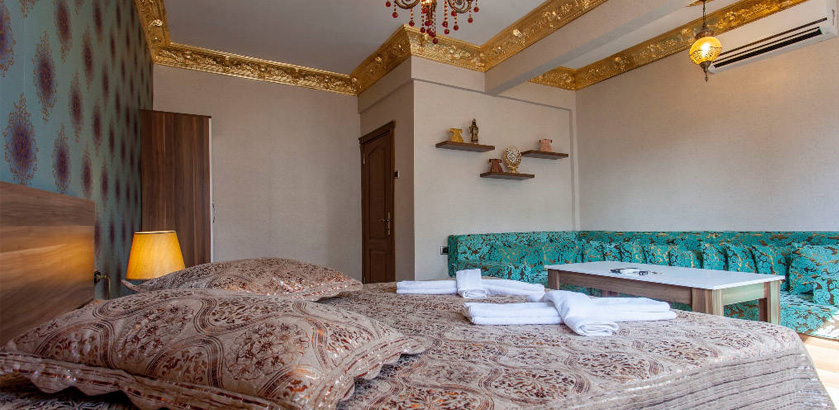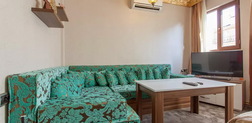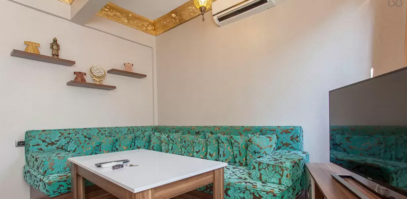2 Bedrooms, 1 Toilet and Bathroom, 1 Kitchen, 2 double beds of 1.80x1.90 and folding sofa for 2, 1.50x2.00 Ottoman style oriental corner for the stay of total 7 people. Comforts in the room