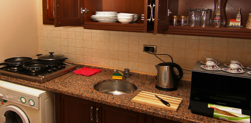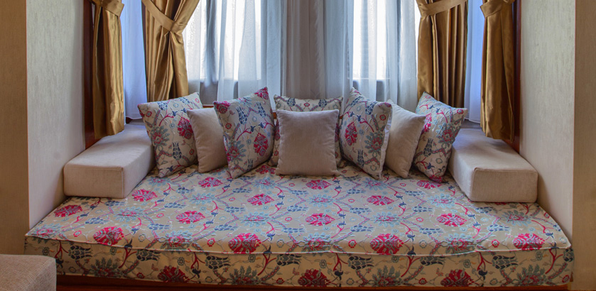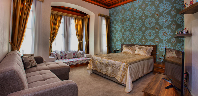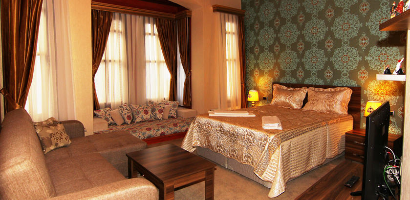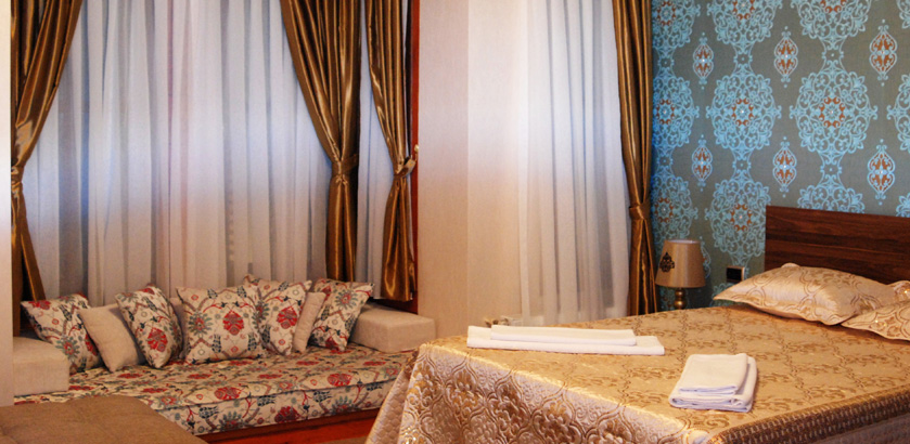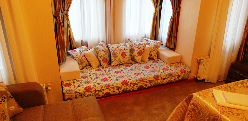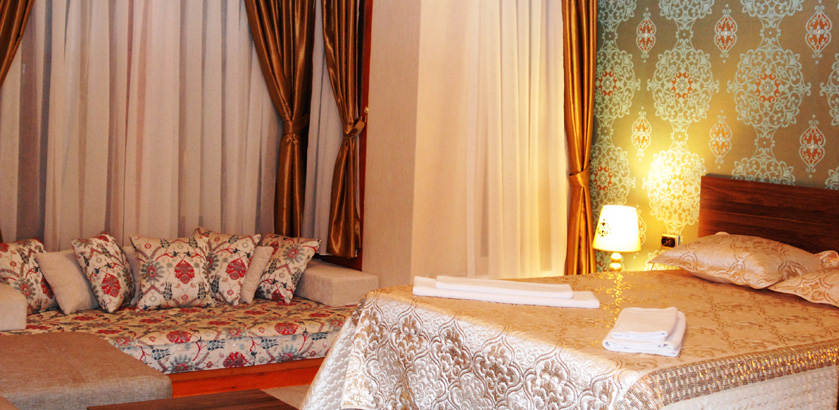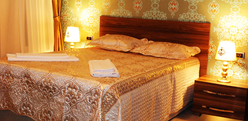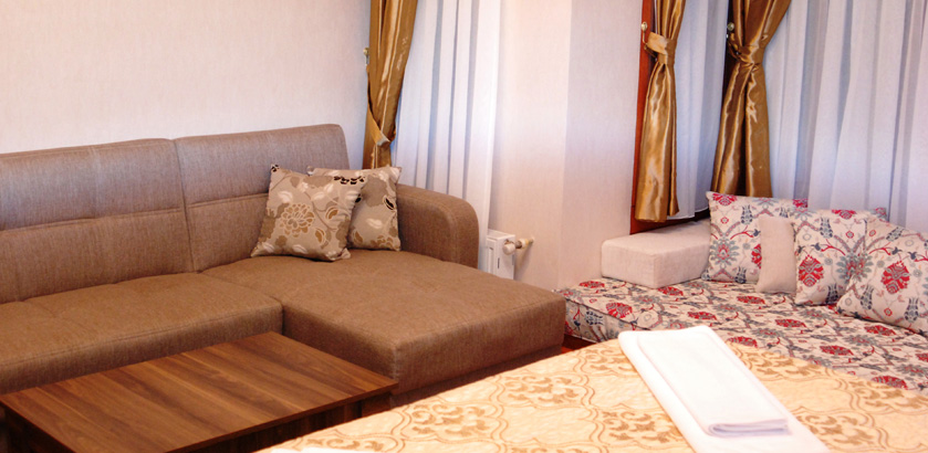 2 Bedrooms, 1 Toilet and Bathroom, 1 Kitchen, 2 double beds of 1.80x1.90 and folding sofa for 2, 1.50x2.00 Ottoman style oriental corner for the stay of total 7 people. Comforts in the room.